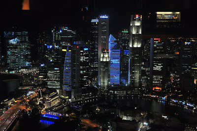 Мы вернемся в Сингапур всего на 1 ночь на обратном пути. Остановимся в самом высоком здании города - в Свиссотеле ради посещения самого высокого и весьма престижного ресторана Equinox. Вообще, Свиссотель оставил двойственное впечатление - лишь то, что остановились мы там ради ужина и одной ночи я прощу ему все. Швейцар открыл дверь такси, но номер дали весьма потертый, с разбитой столешницей в ванне и очень тугой, недоступной для нажатий женщине, кнопкой включения душа. Что же до ресторана, то он знаменит своим видом, а не кухней - там пытаются создать высокую кухню, которая при этом сильно уступает той, что мы едим в Москве. Суп с лангустинами весьма средний, к которому забыли дать ложек, и лишь недостаточное знание английского не позволило мне рассказать чьи они дети. Хорошо, что администратор заметил оплошность и попробовала перевести все в шутку. Ну а вид из ресторана действительно - замечательный.