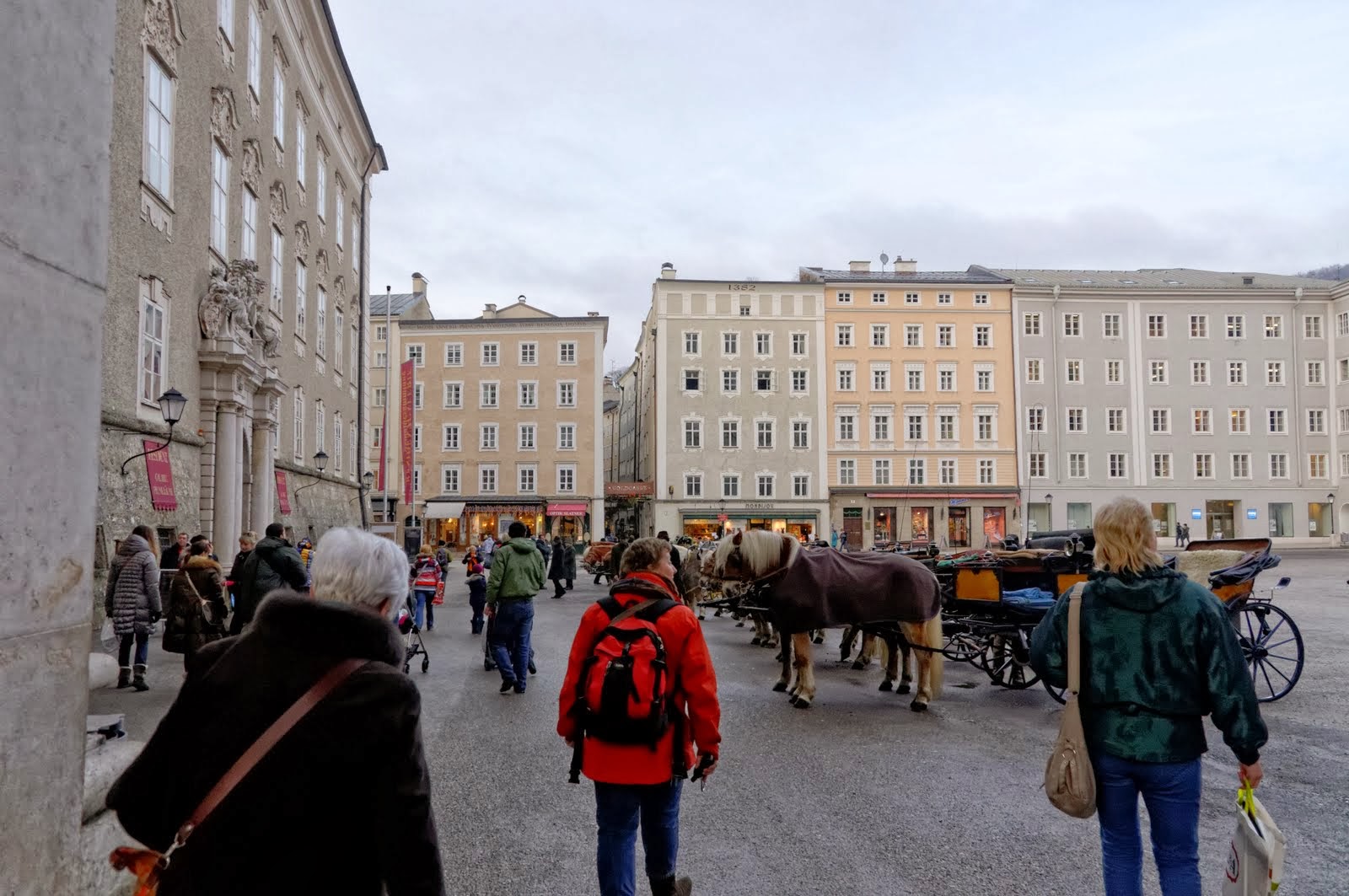 В сувенирных лавках повсюду торгуют конфетами "Моцарт", а экипажи скучают в ожидании туристов.